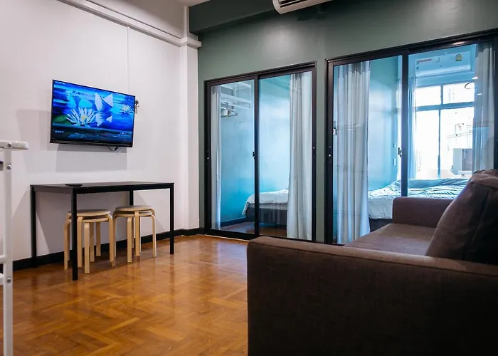 Dit appartement van 60 m^2 is binnen 10 rijden van het Museum Jim Thompson House te vinden. River City winkelcomplex is bereikbaar binnen 2 km.